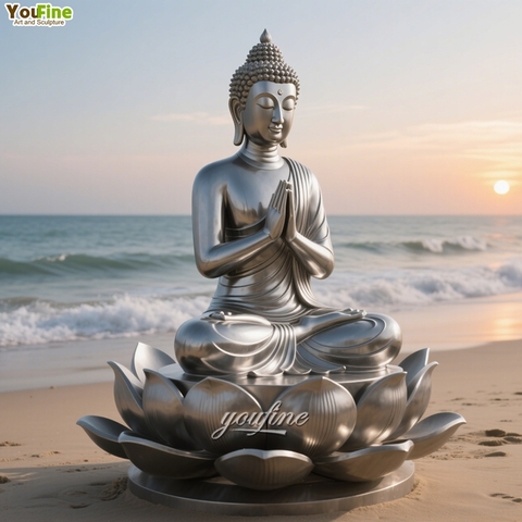 Mirror Polished Outdoor Garden Decor Metal Sculpture Stainless Steel Buddha Statue